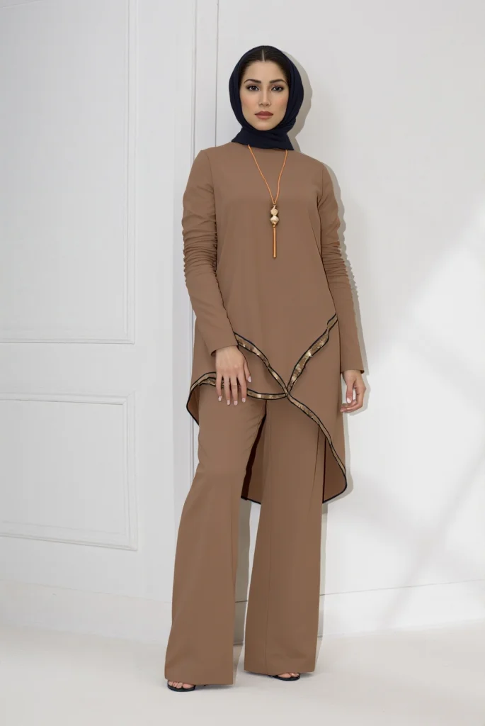 Two-Piece Dubai Fashion Abaya Casual Wear Solid Color Long Sleeve Shirt Wide Leg Pants Moroccan Breathable Polyester for Muslims